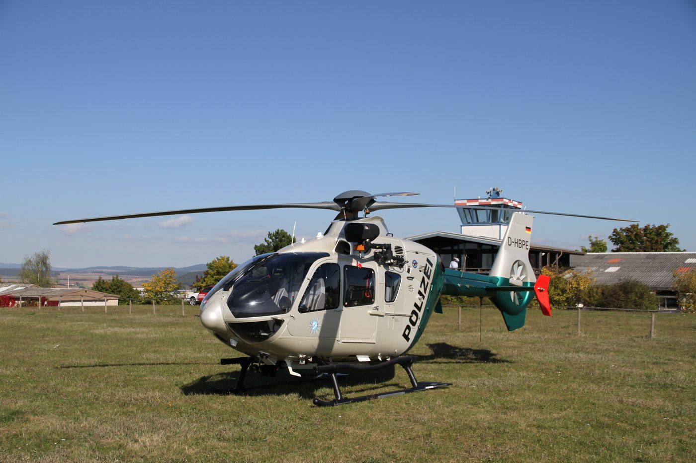 Flugplatz Bad Neustadt - Grasberg mit Polizeihubschrauber vor dem Clubheim