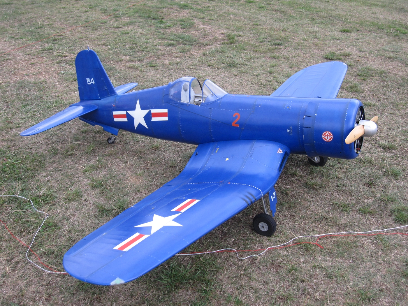 Modellflugzeug Corsair auf dem Segelfluggelände Ostheim