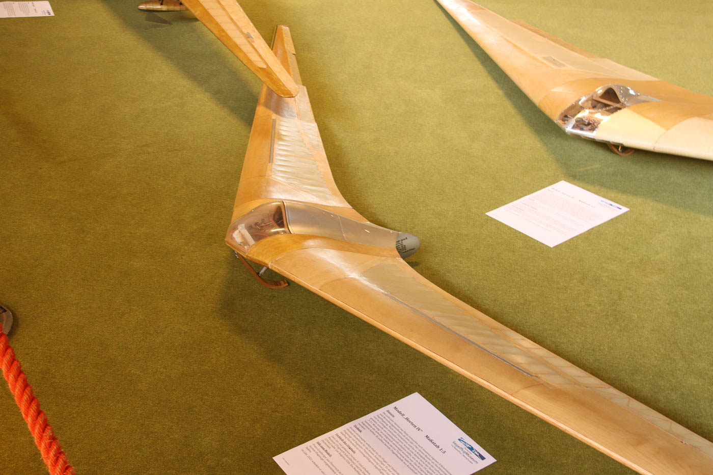 Modell Horten IV im Maßstab 1:5. das Original wurde von den Gebrüdern Horten ab 1941 als Hochleistungssegelflugzeuge entworfen und gebaut. Piloten mussten im Liegen fliegen.