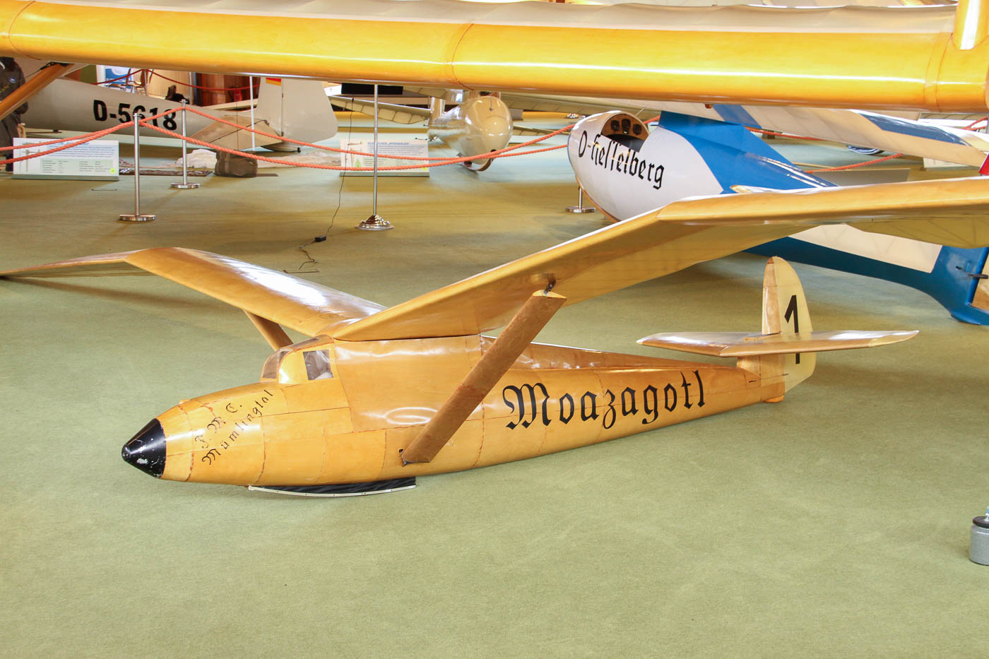 Modell Moazagotl Maßstab 1:2, wunderschönes Großmodell in den 1980 ziger Jahren, es ist bei vielen Veranstaltungen vorgeflogen worden.Das Original war ein Entwurf von Wolf Hirth, es war komplett aus Holz und hatte eine Spannweite von 20 m.