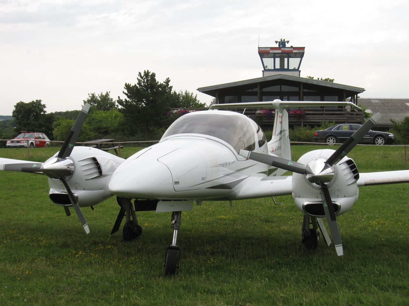 DA 42 auf dem Grasberg, Frontansicht vor dem Clubheim