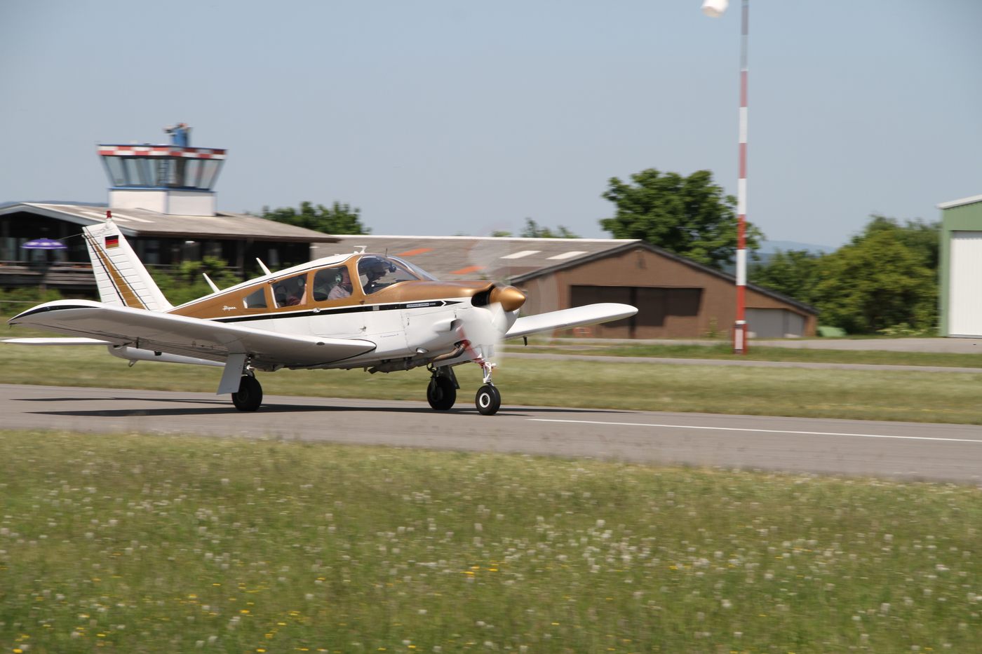 Flugplatz Bad Neustadt - Grasberg, Startlauf einer Piper Cherokee