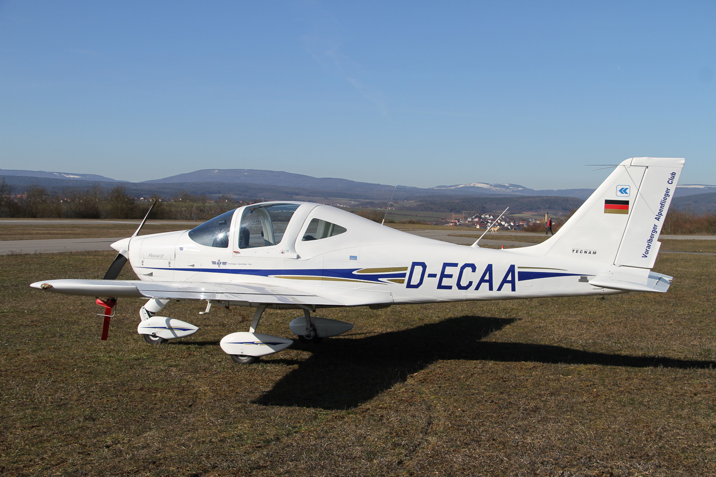EDFD, Flugplatz Bad Neustadt am 24.2.2019, im Hintergrund die schneebedeckte Rhön