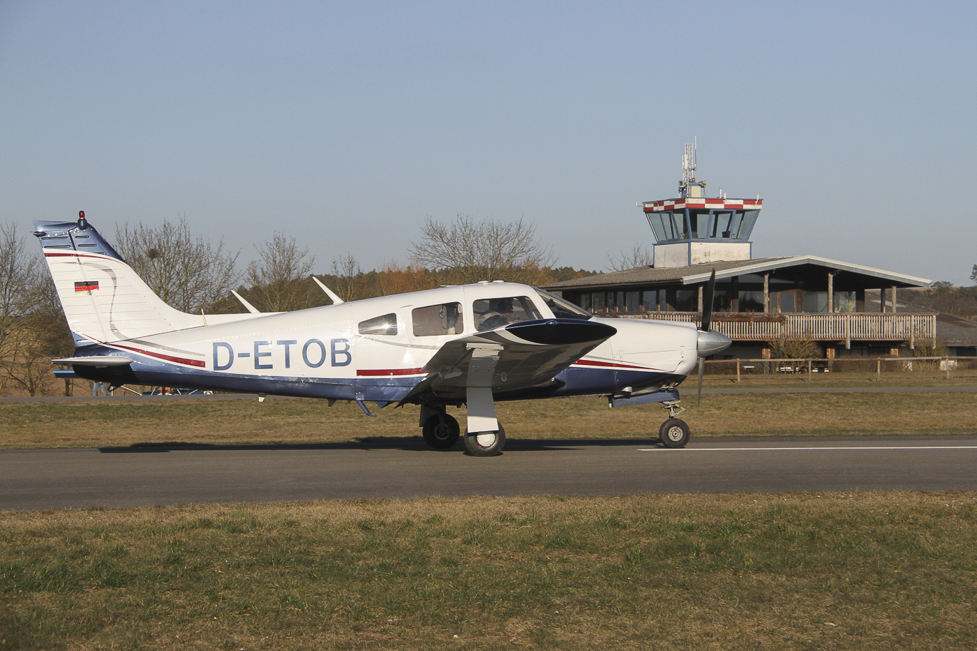 Flugplatz Bad Neustadt - Grasberg am 27.2.2022, Piper 28 RG beim Start