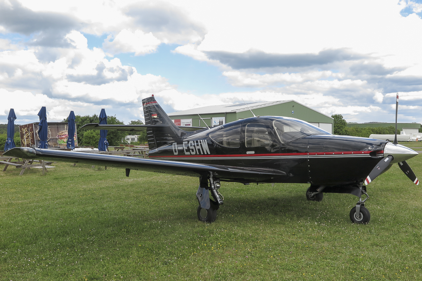 Flugplatz Bad Neustadt - Grasberg am 29.5.2022, Rockwell Commander vor dem Biergarten