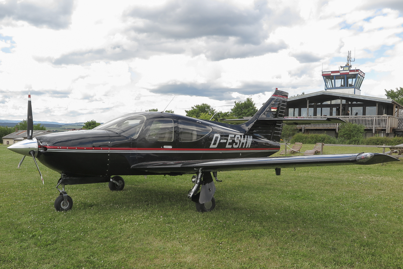Flugplatz Bad Neustadt - Grasberg am 29.5.2022, Rockwell Commander vor dem Clubheim