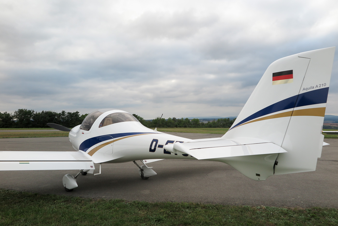 Flugplatz Bad Neustadt - Grasberg am 20.8.2024, Aquila A210 Heckansicht