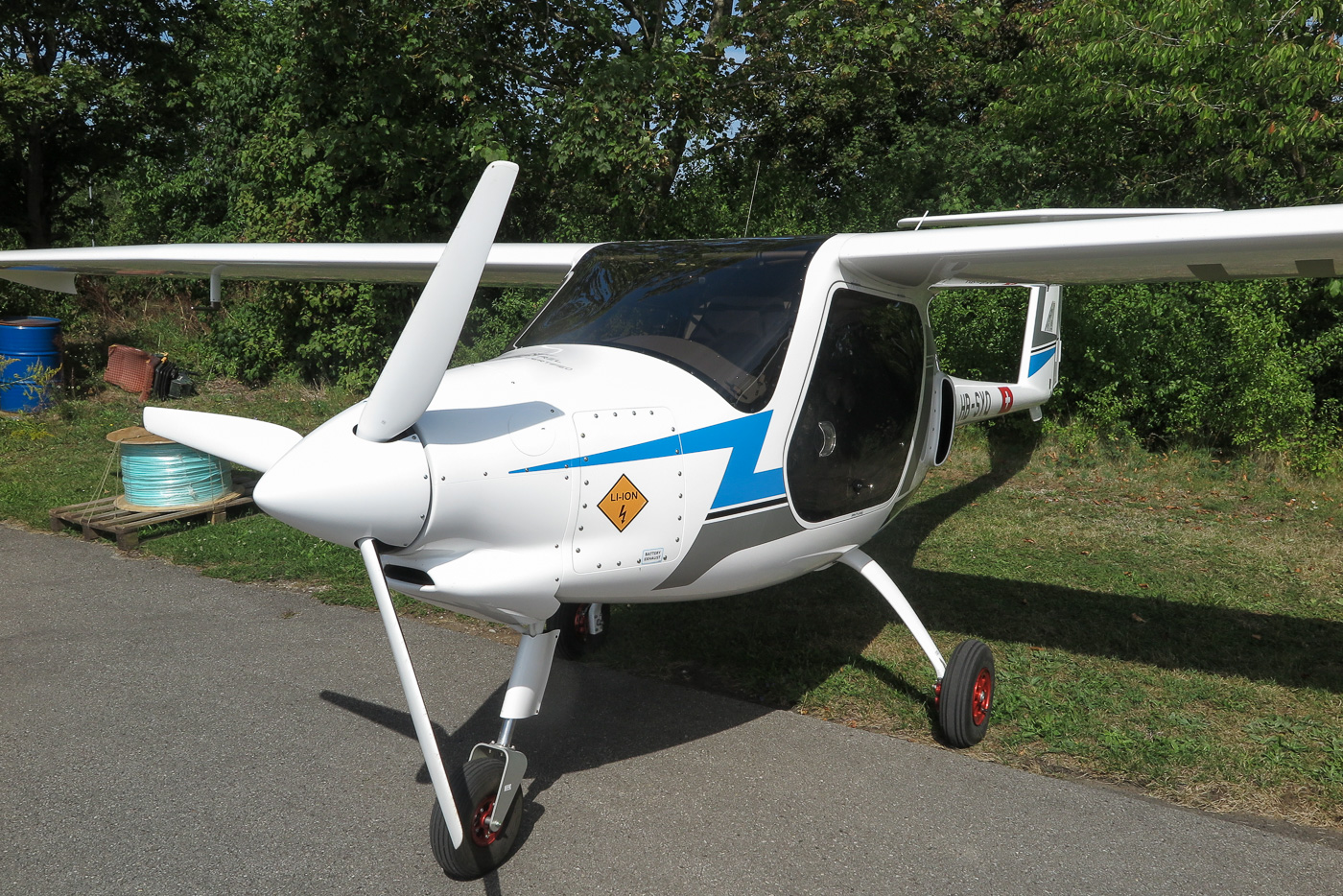 Flugplatz Bad Neustadt - Grasberg am 22.8.2024, serienmäßig hergestelltes Elektroflugzeug, Frontansicht