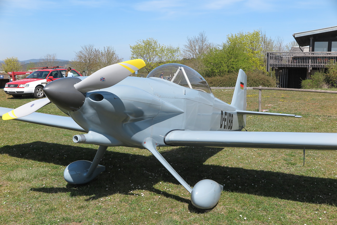 Flugplatz Bad Neustadt - Grasberg am 12.4.2025, RV-4 vor unserem Clubheim