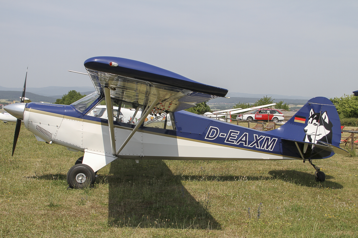 Flugplatz Bad Neustadt - Grasberg am 19.06.2022, linke Seite einer blauen Husky