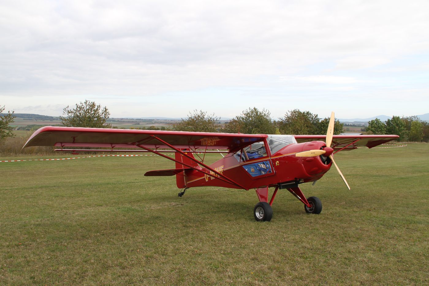 ein knallrotes Kitfox in Bad Königshofen auf dem Segelfluggelände Am Himmelreich
