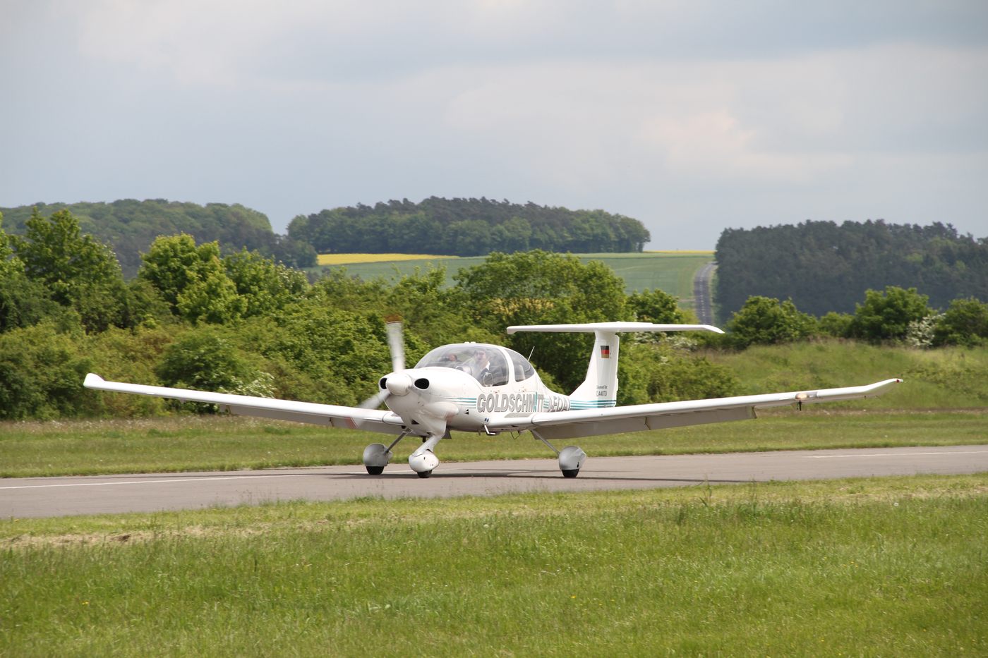 Eine DA 40 TDI bei der Landung auf der Piste 31