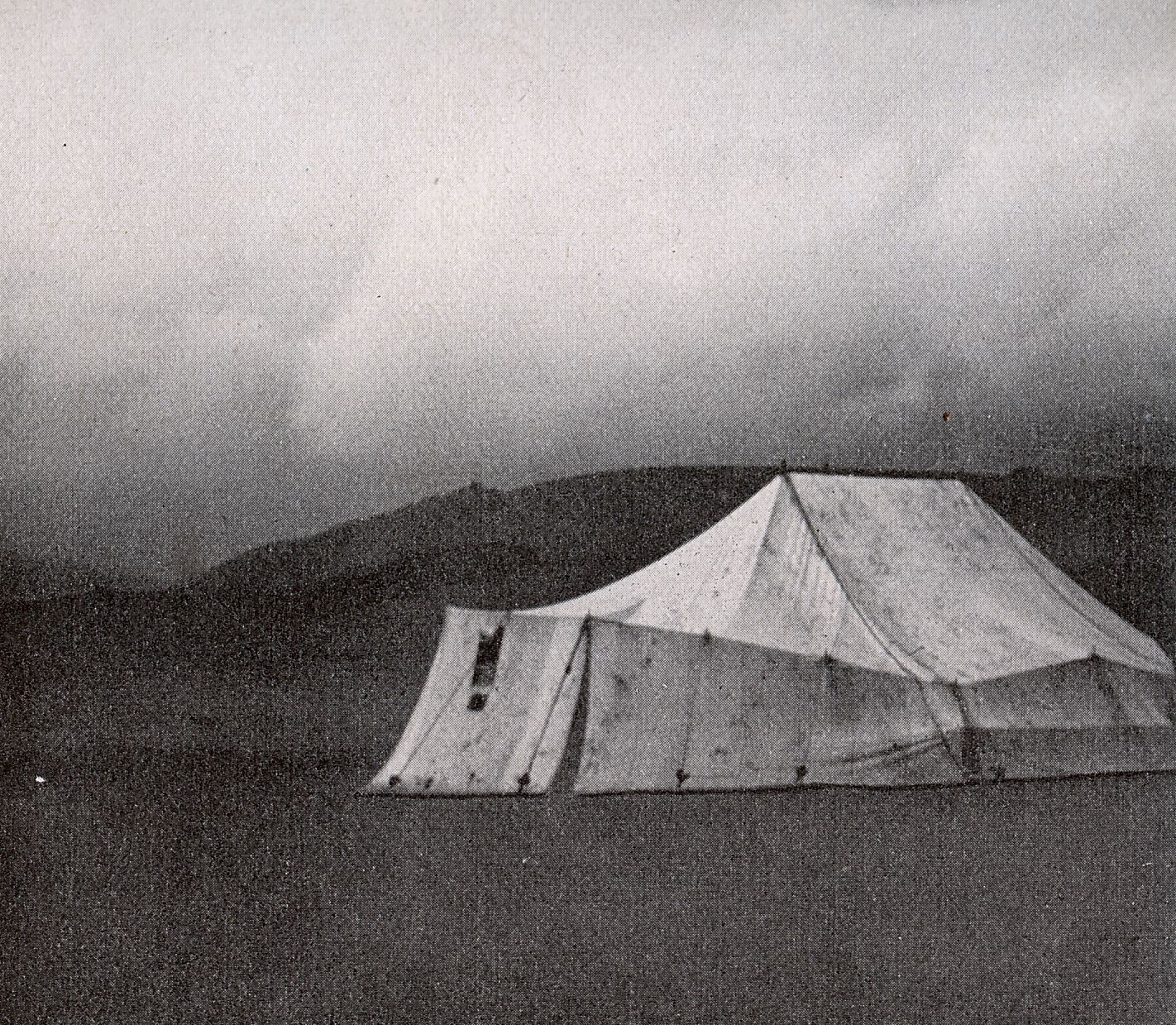Das erste Flugzeugzelt auf der Wasserkuppe 1920. Es ist dasselbe Zelt, in welchem Lippisch und Espenlaub im Herbst 1921 überwintern wollten und das vom Schneesturm zerstört wurde.