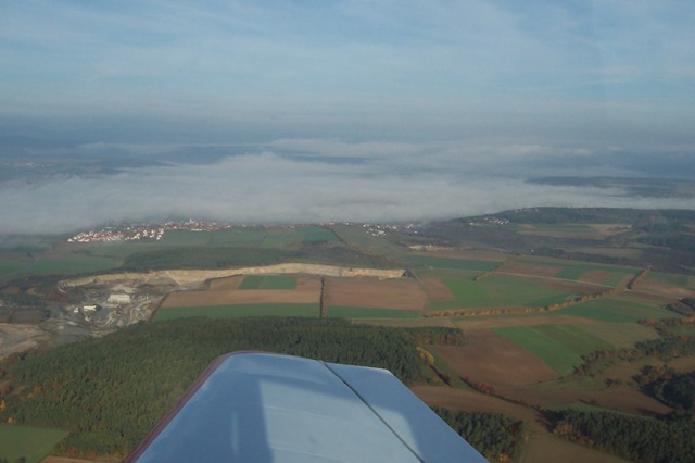 unter dem Dunst liegt irgendwo der Flugplatz Bad Neustadt