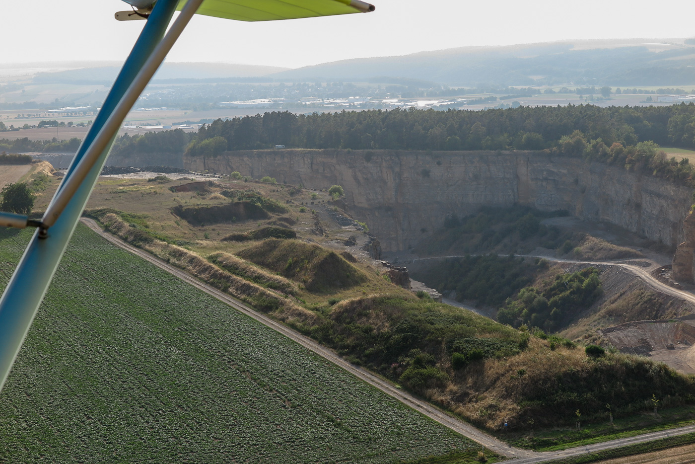 Luftbilder, Mitflug UL am 13.08.2025, Blick in den großen Steinbruch