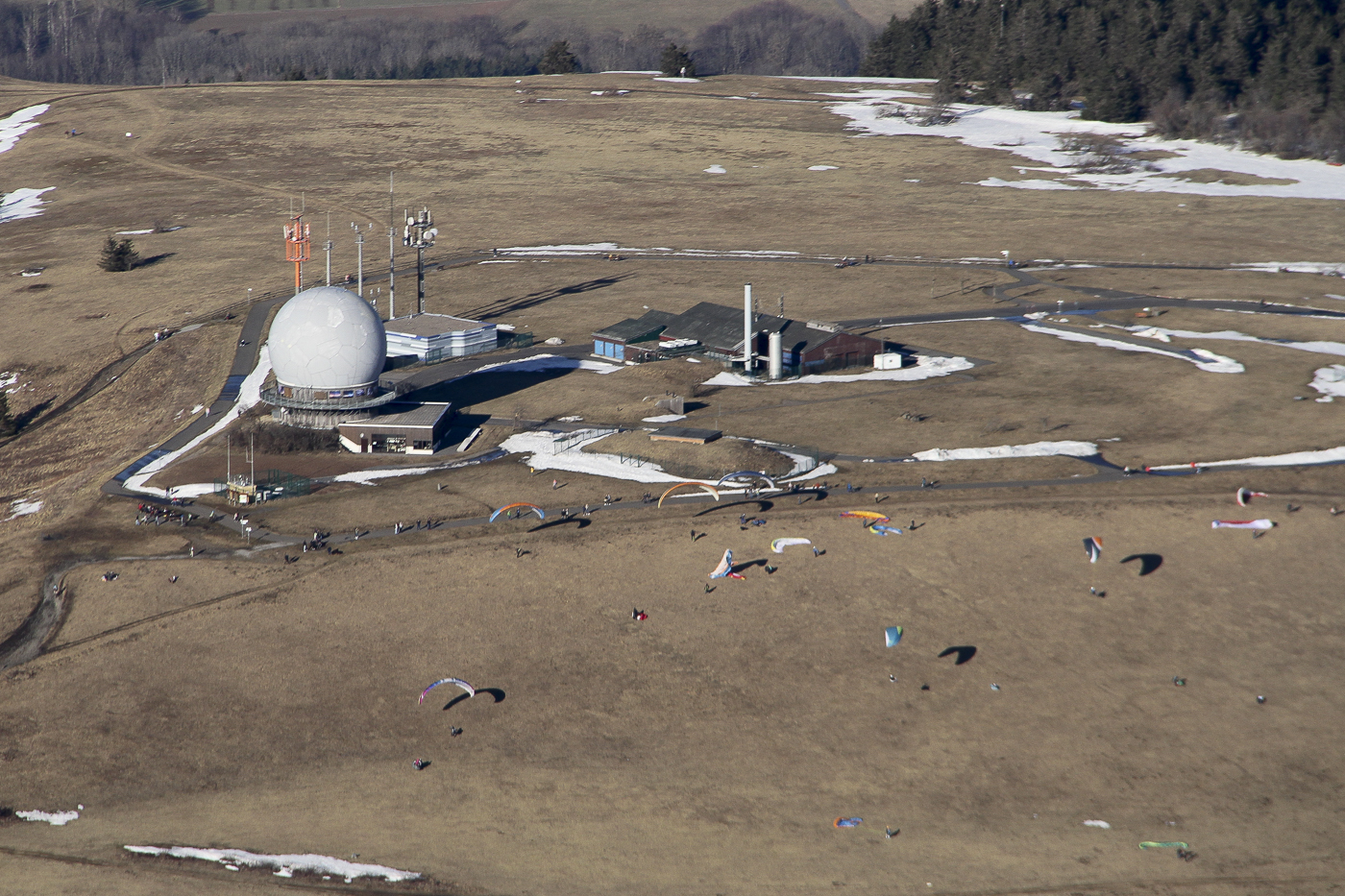 Luftbild Wasserkuppe am 21.2.2021 mit Paraglidern