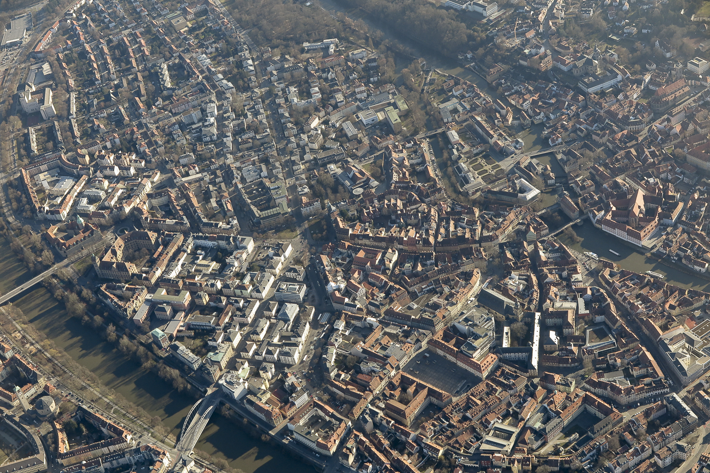 Luftbild am 28.02.2021, die Dächer von Bamberg