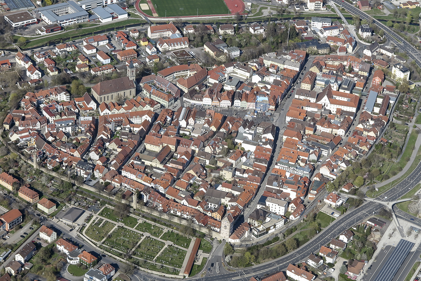 Luftbild aus dem Segelflugzeug am 18.4.2022, Altstadt Bad Neustadt