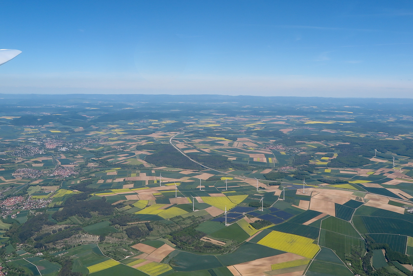 Luftbild am 10.5.2025, Windräder nben der A71