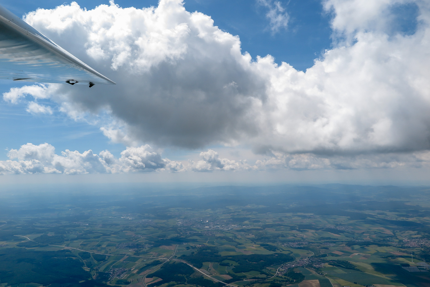 Luftbild Ka 8 Flug am 31.5.2025, tolle Wolken aber mäßige Thermik
