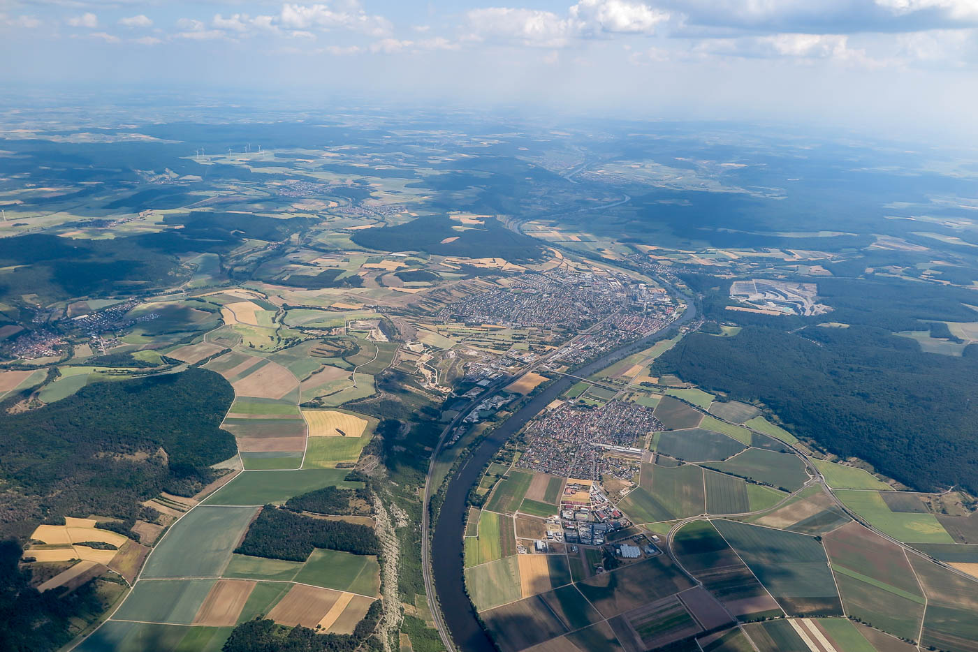 Karlstadt, Foto aus dem wunderbar hoch fliegenden Segelflugzeug.
