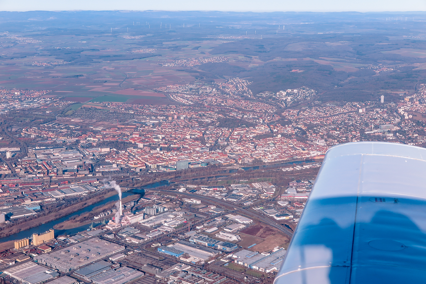 Luftbild aus Moran am 19.1.2025, Blick über Schweinfurt bis zur Rhön