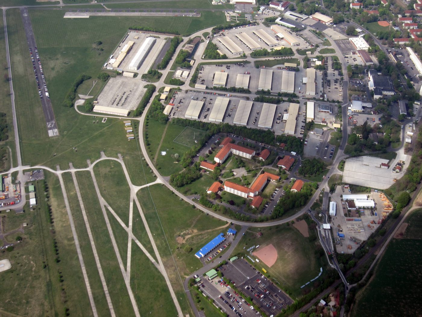 Luftbild am 1.5.2012, ehemaliger Militärflugplatz Geldersheim nordwestlich von Schweinfurt