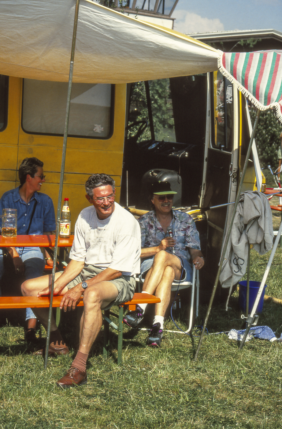 Robert Bieber am Mikrophon moderiert auch im Sitzen.