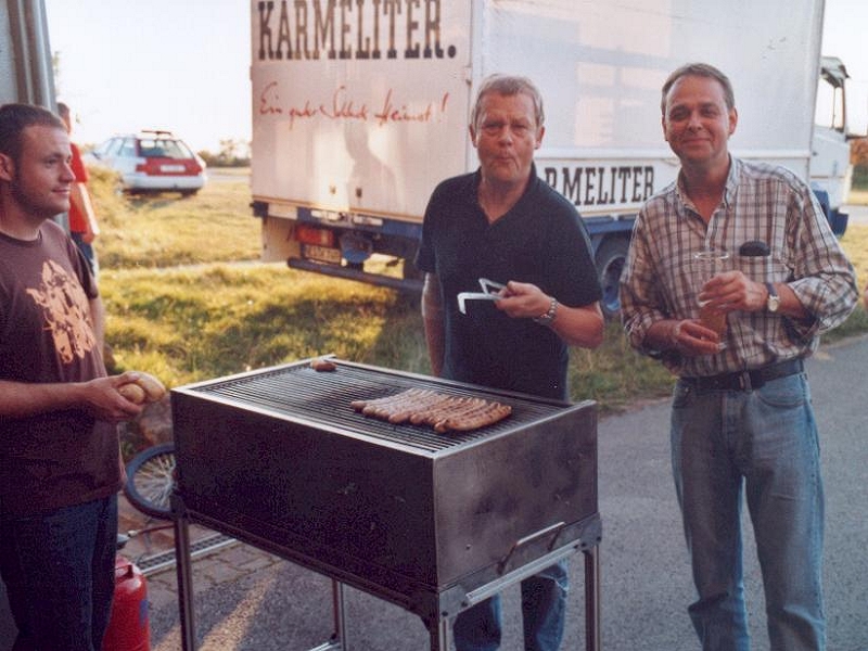 Grill vor der alten Halle in Betrieb