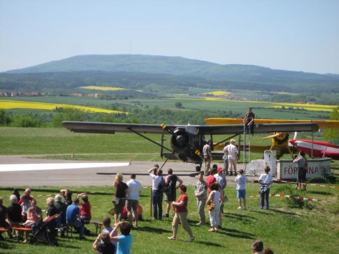 Das Ultraleichtflugzeug Breezer an unserer Tankstelle am Grasberg in Bad Neustadt.