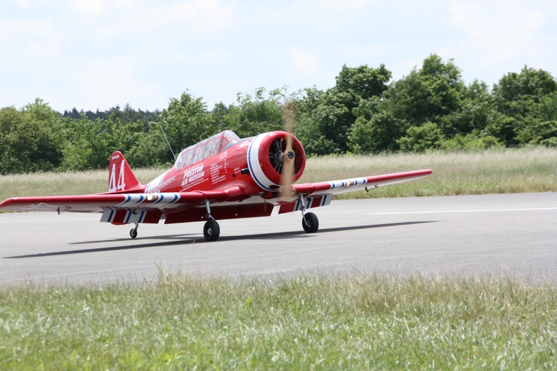 AT 6 Großmodellflugzeug rollt auf unser Piste