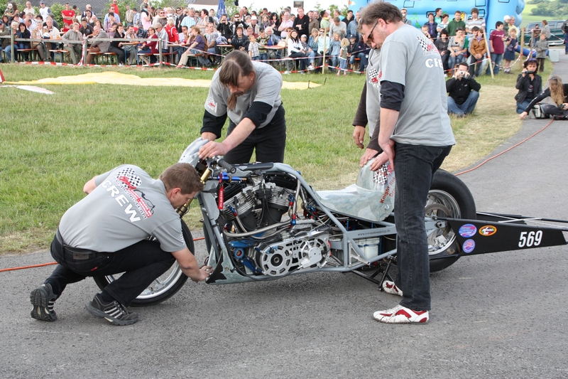 Warm-up eines Dragracing-Motorrads