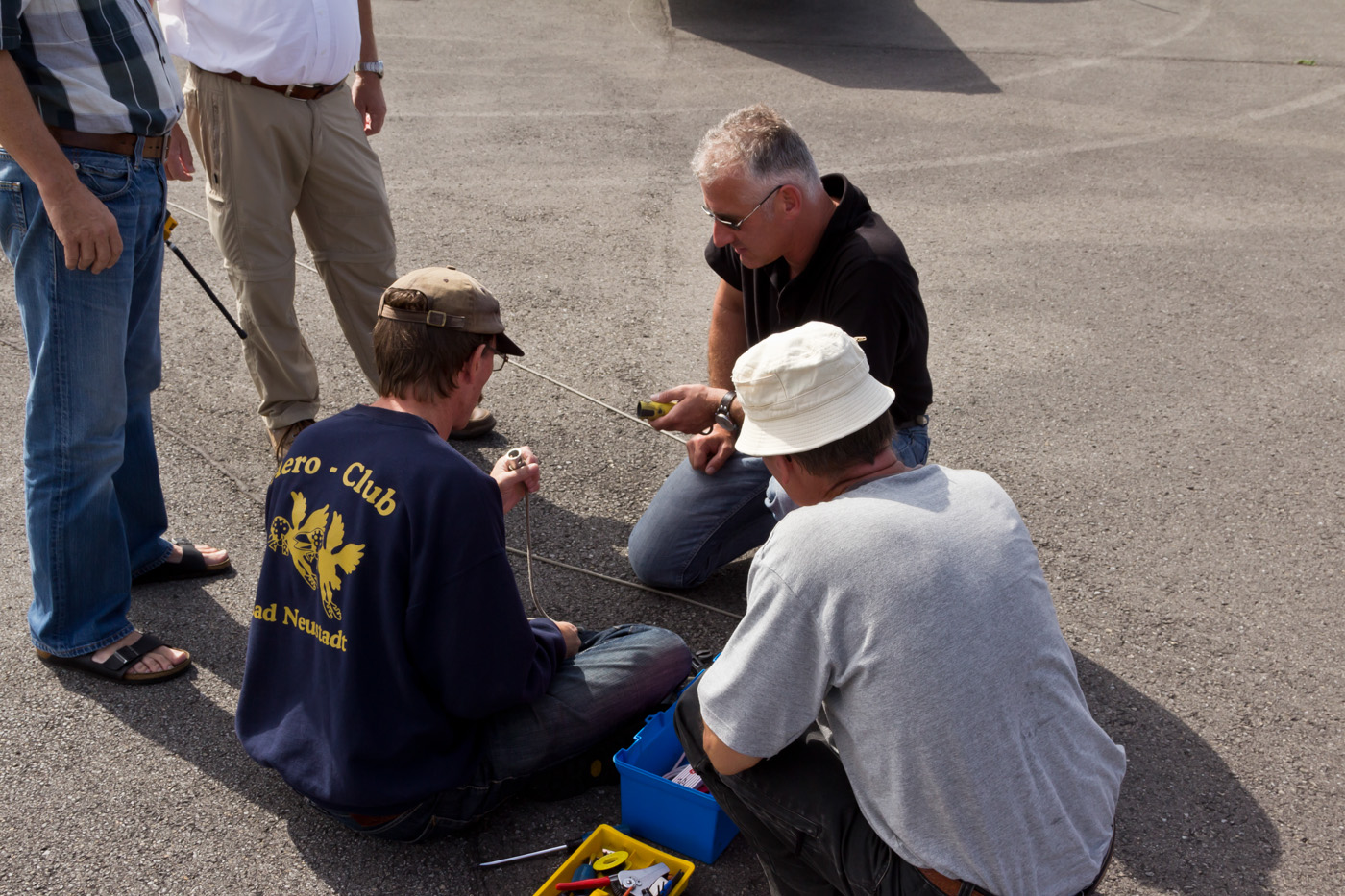 Reparatur des gerissenen Seils der Schleppmaschine