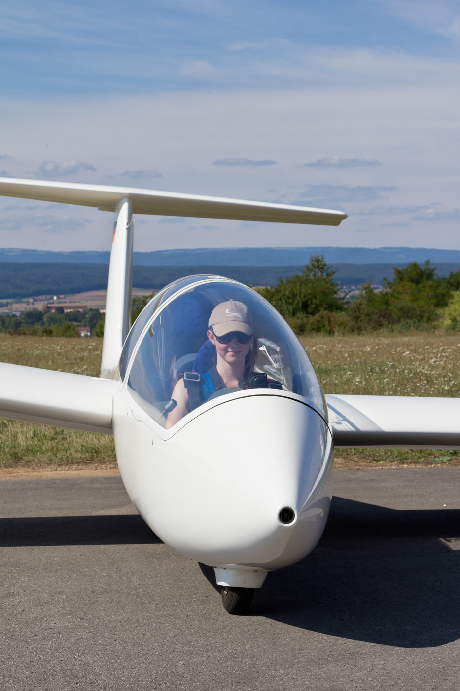 Interessentin an einer Flugschülerausbildung beim Probesitzen vor dem ersten Schnupperflug