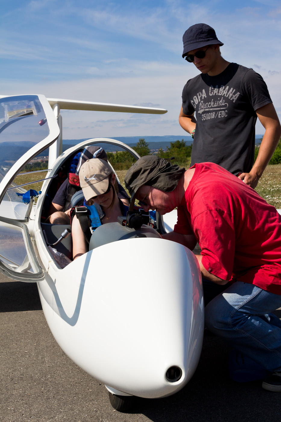 Interessentin an einer Flugschülerausbildung beim Probesitzen vor dem ersten Schnupperflug