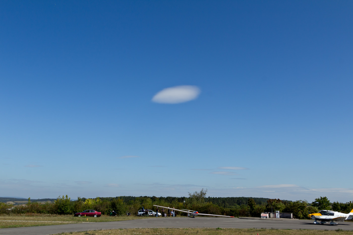 Blick auf den Startwagen und die Tankstelle mit Lenticulariswolke