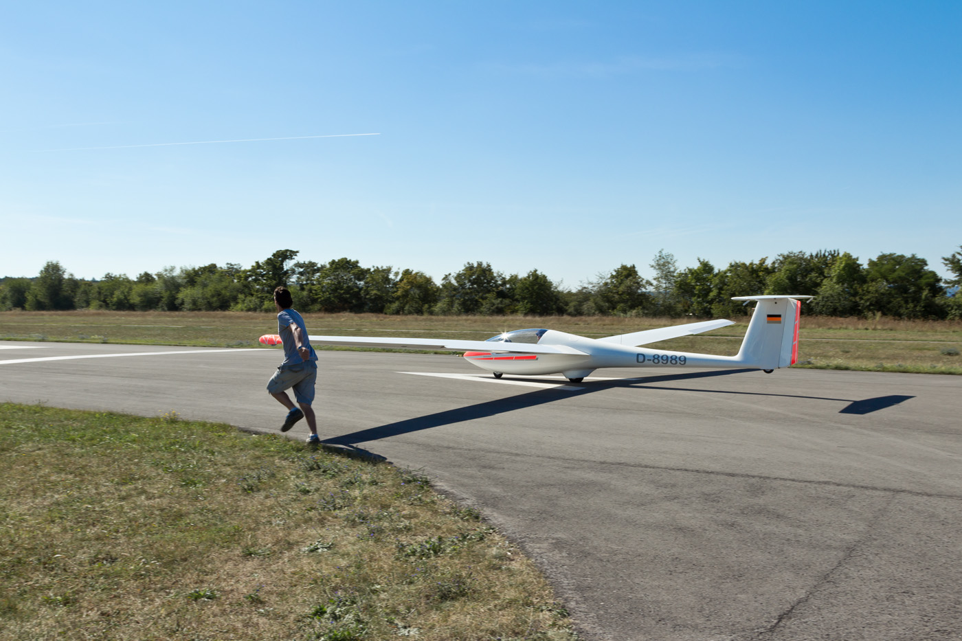 Der Einzitzer G102b beim Flugzeug-Schleppstart