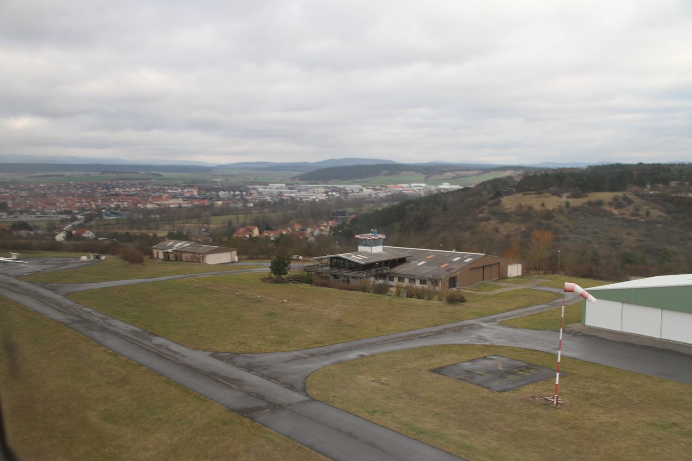 Blick aus dem Fenster der Schleppmaschine beim Start auf der Piste 31.