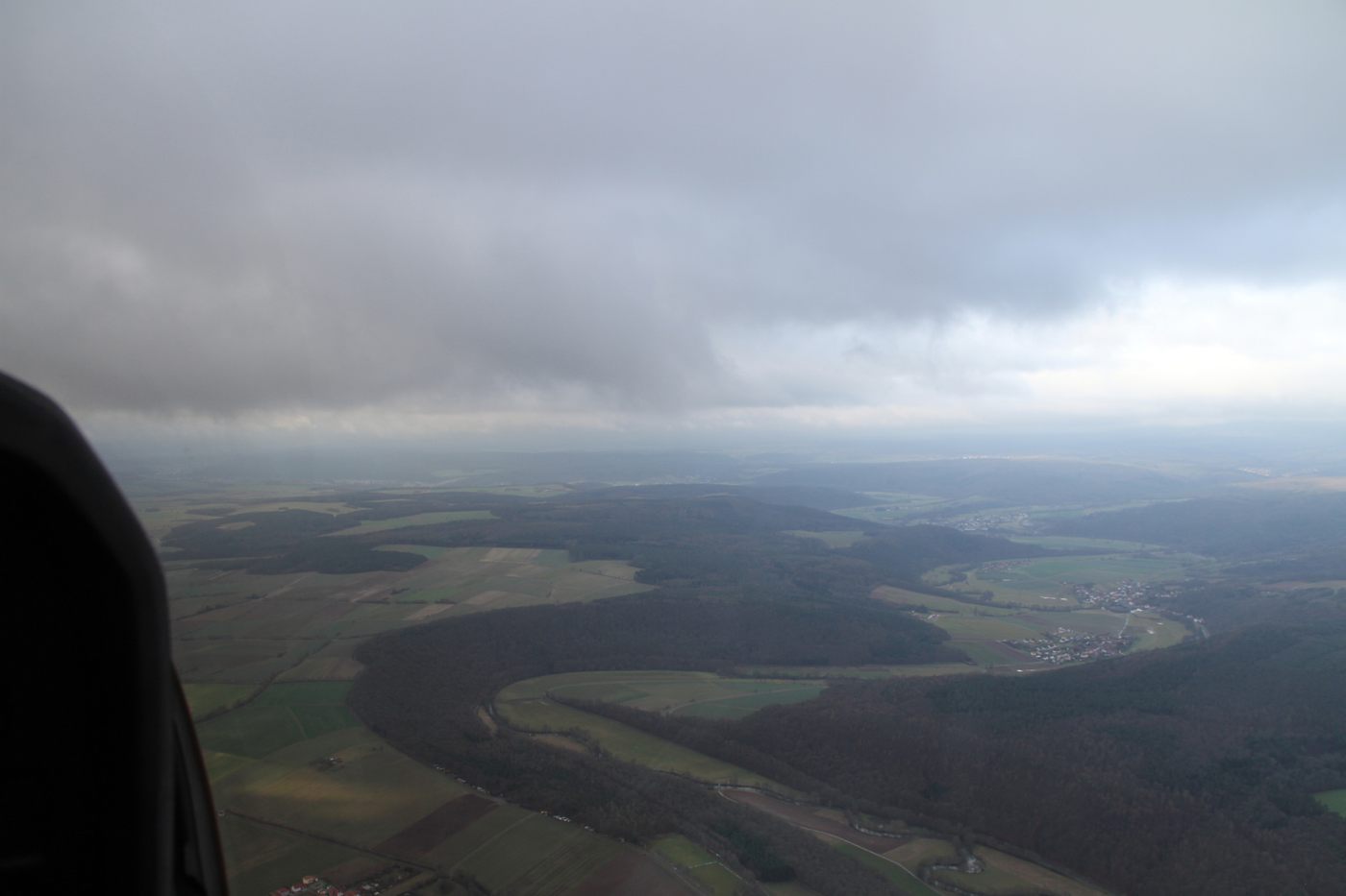 Topwetter ist was anderes, aber für Anfang Januar trotzdem ganz ok. Hier sehen wir das Saaletal aus dem Segelflugzeug fotografiert.