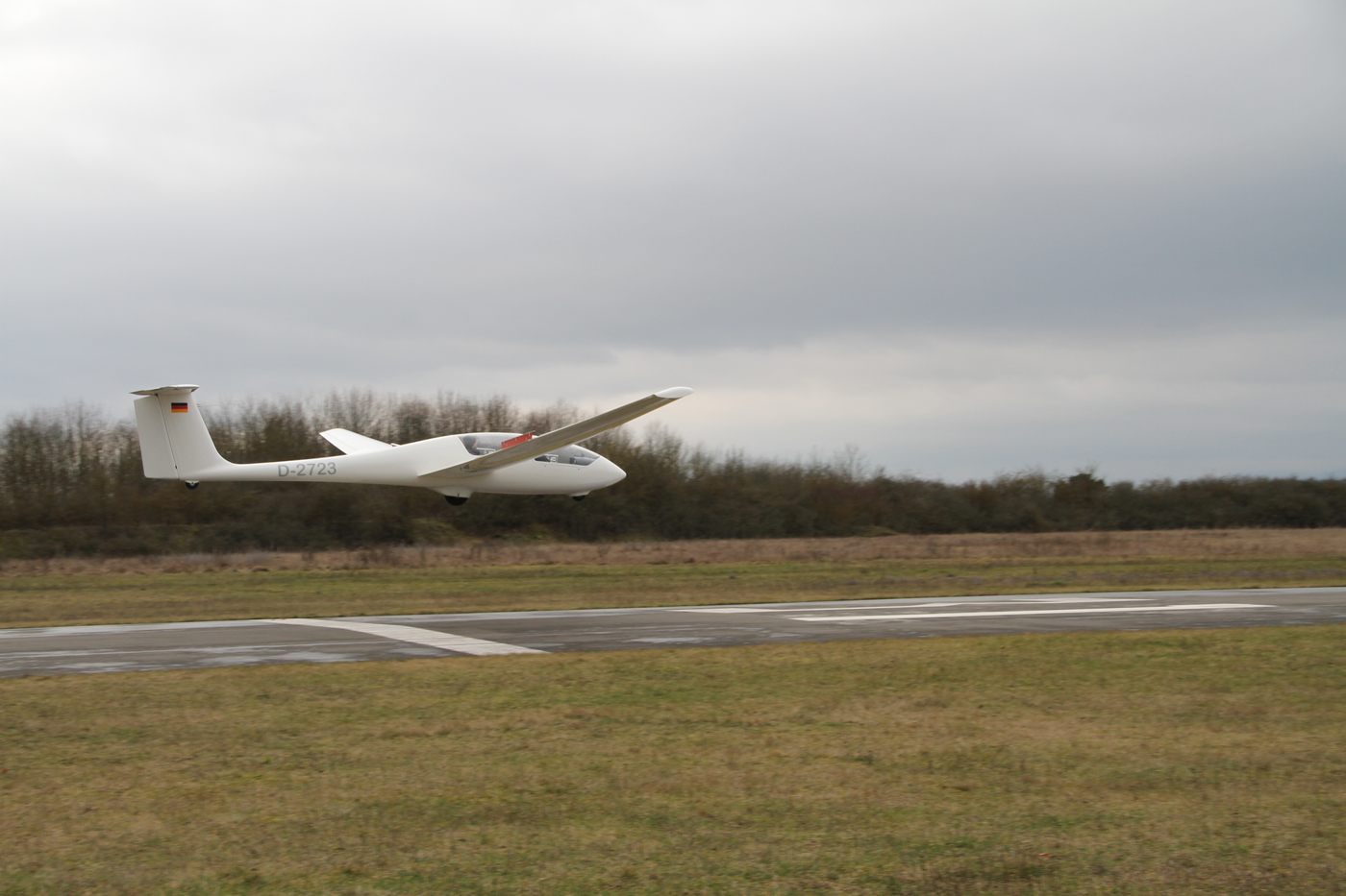 Unser Twin schwebt im unmittelbaren Endanflug über der Piste 31.