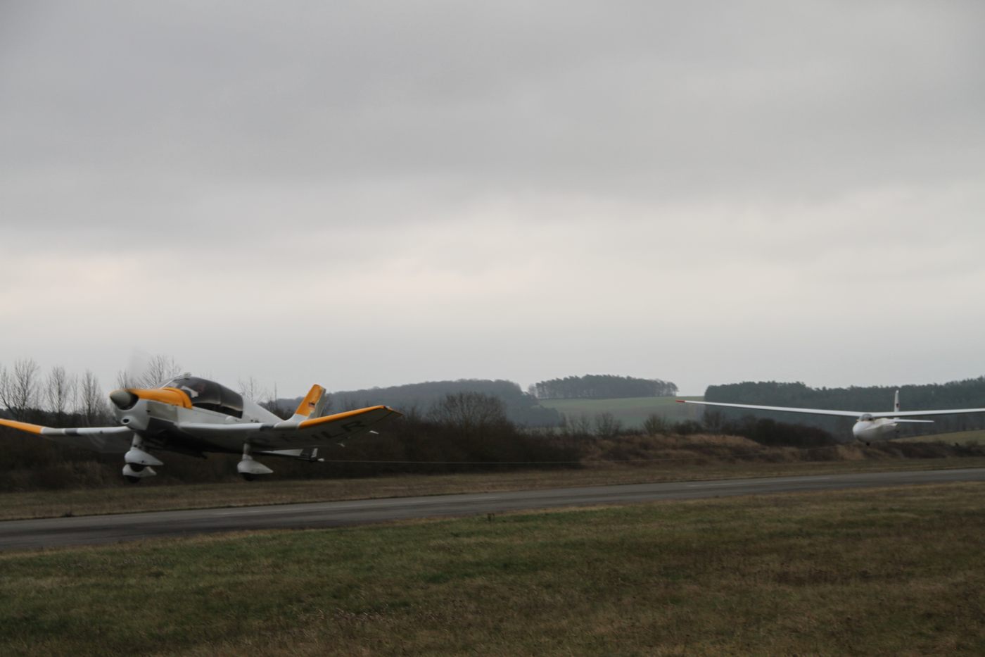 Der F-Schlepp DR 400 mit Ka 6 ist gerade abgehoben.
