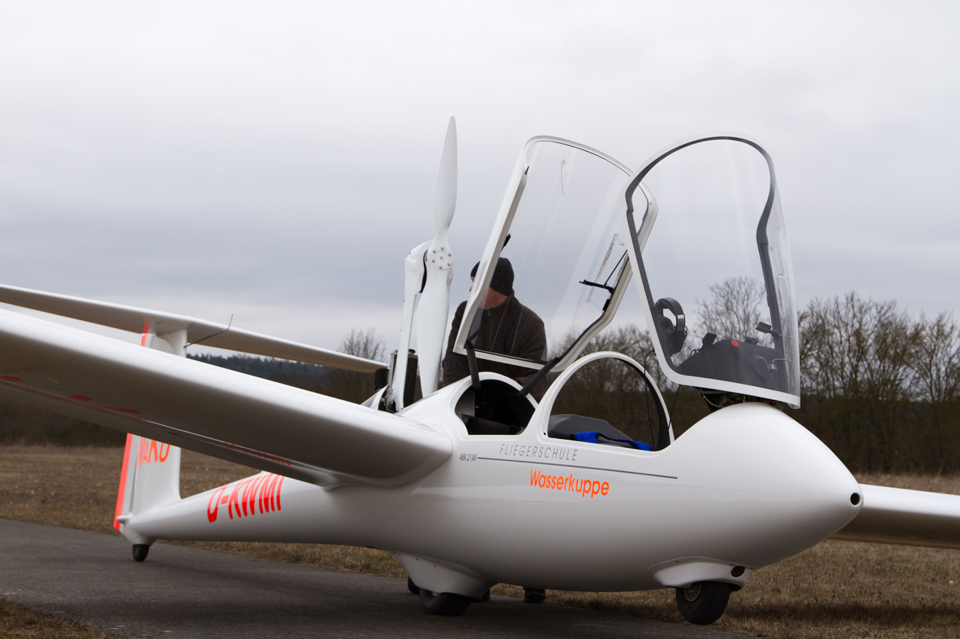 Wegen Schnee auf der Wasserkuppe zu Gast bei uns: Eine eigenstartfähige ASK21 Mi
