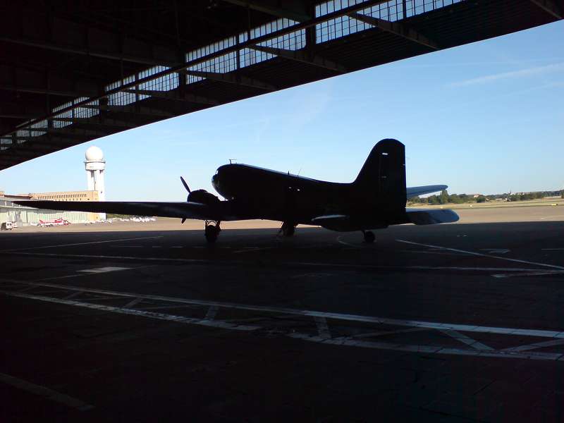 Rosinenbomber unter dem riesigen Hallendach in Tempelhof