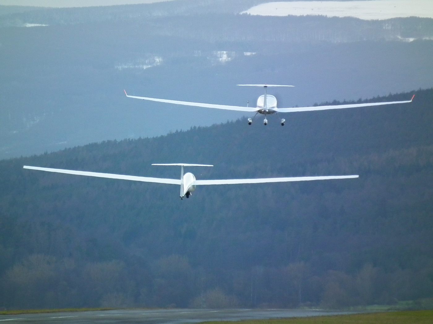 Drei-Königsfliegen 6.1.2012 in Bad Neustadt, F-Schlepp mit Motorsegler (Foto: Jannis Zacher).