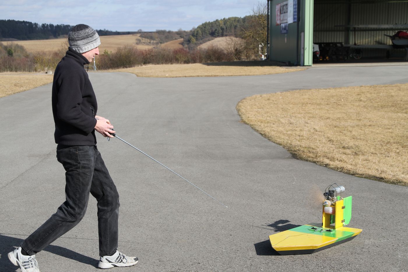 Merkwürdiges Gerät mit Erbauer und Lenker.