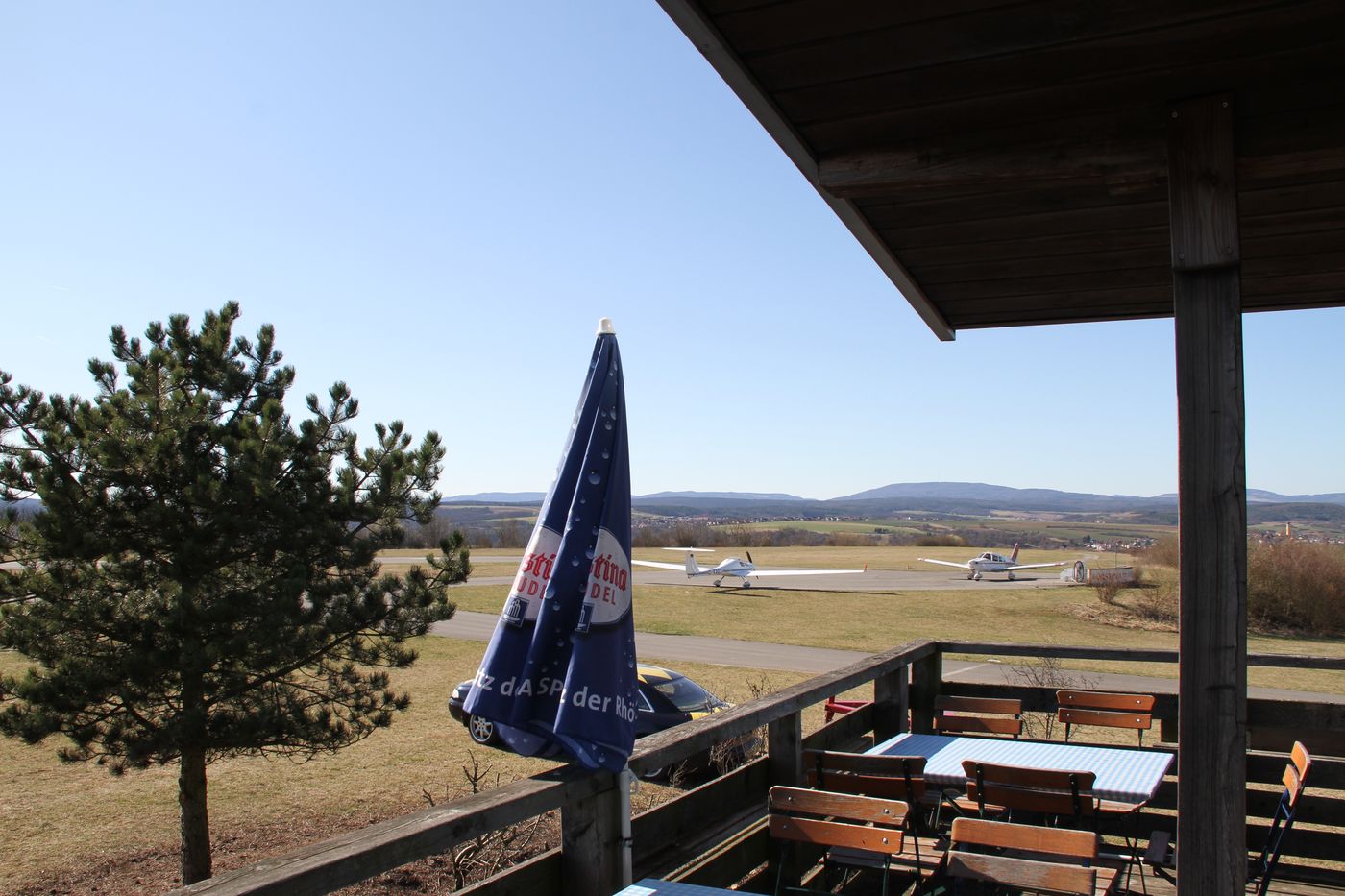 Flugplatzbalkon, Blick in die Rhön, scheinbar zum Greifen nah