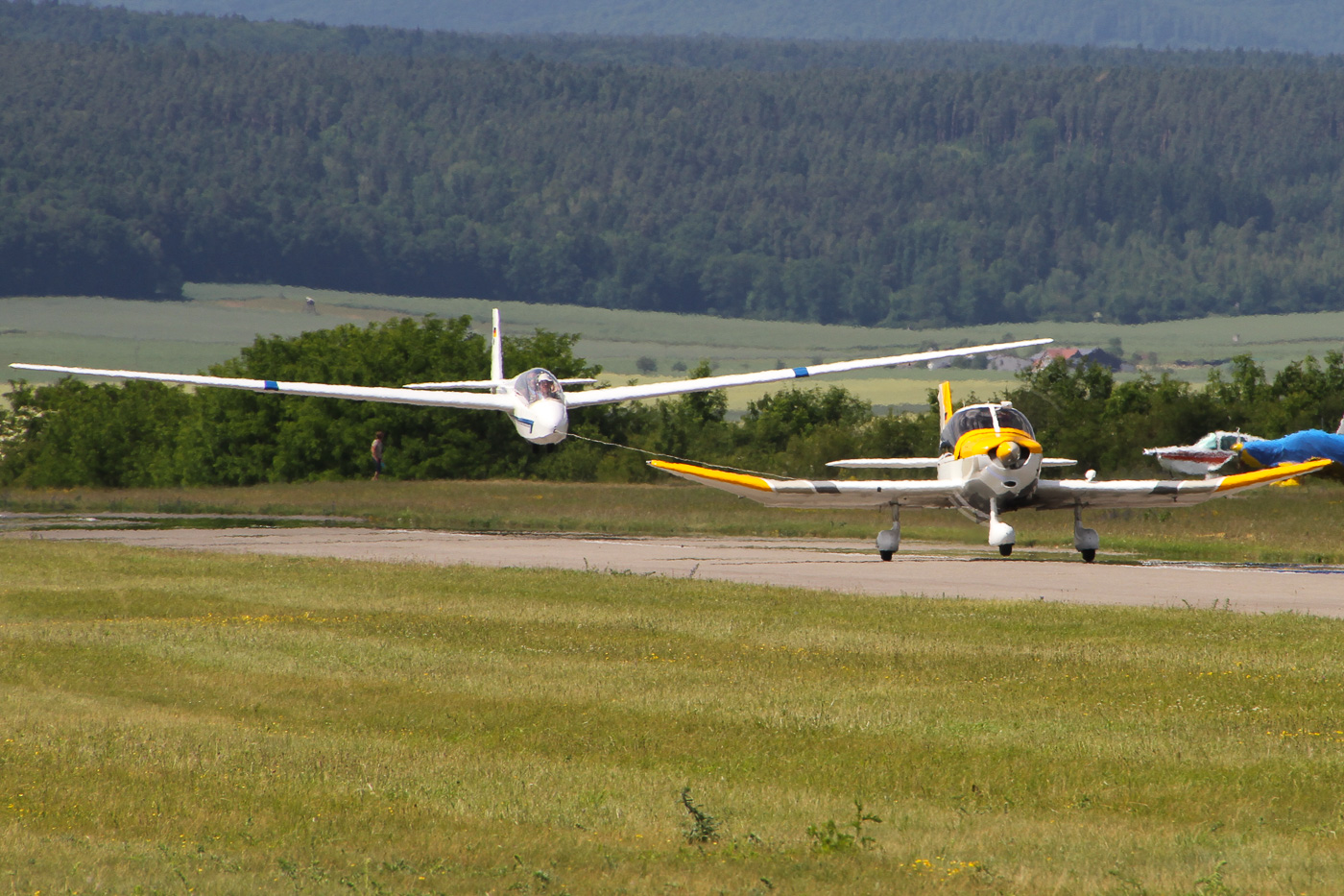F-Schlepp auf der Piste 13, die Ka 13 ist schon abgehoben