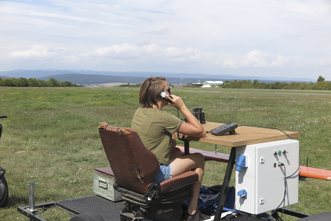Die Segelflugstartleitung an ihrem Arbeitsplatz.