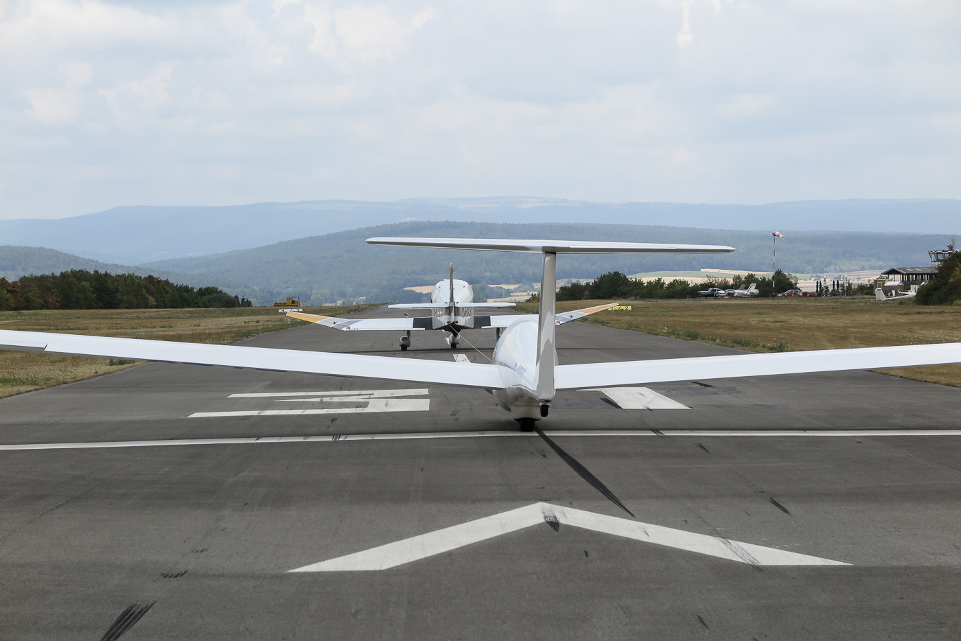 Flugplatz Bad Neustadt - Grasberg am 30.7.2022, F-Schlepp rollt auf Piste 31