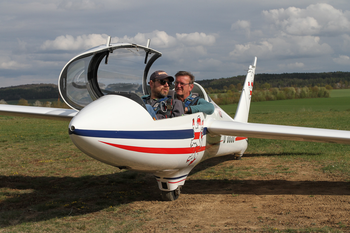 Flugplatz Bad Neustadt, Kunstflug am 13.04.2025, Piloten warten in der MDM-1 Fox